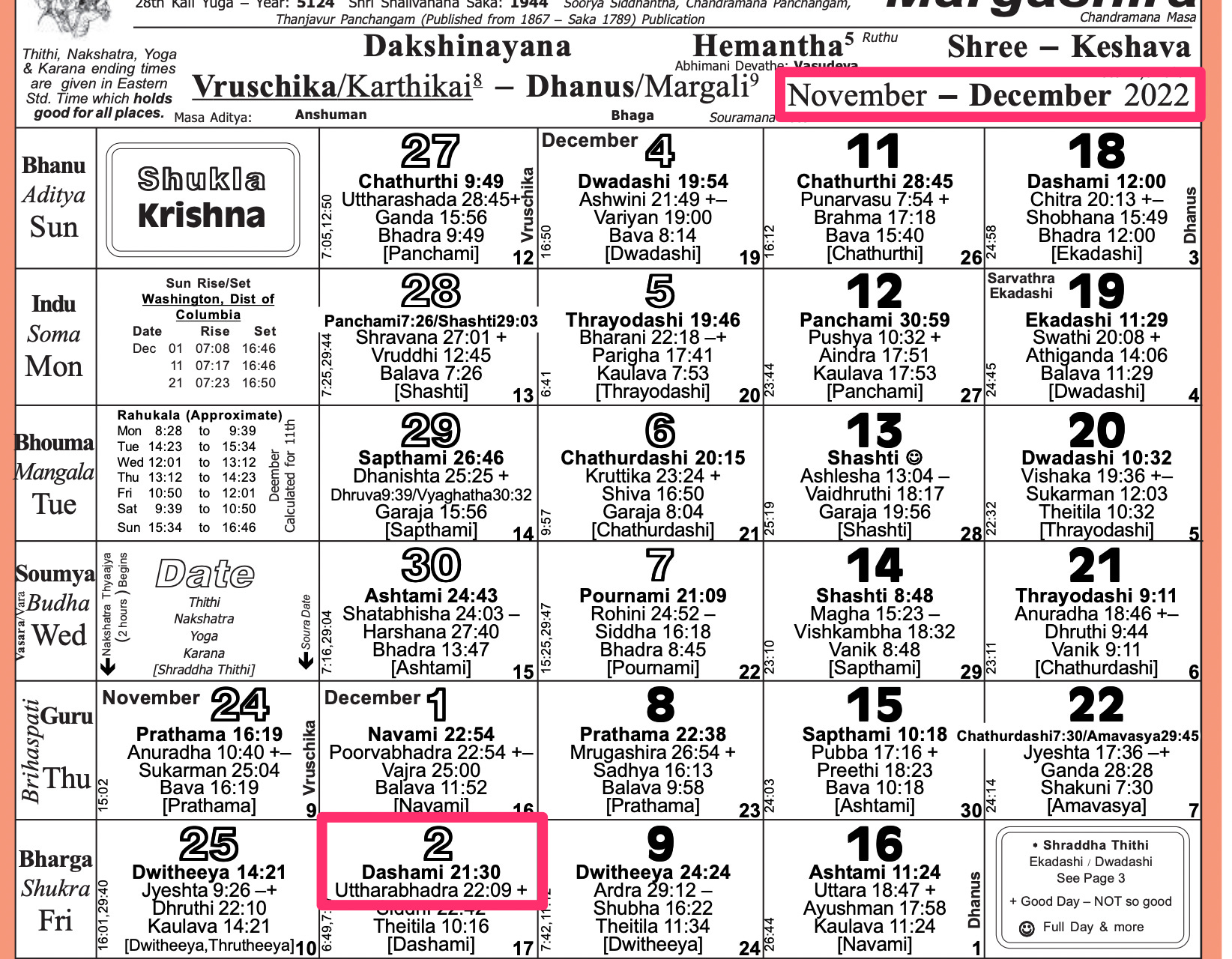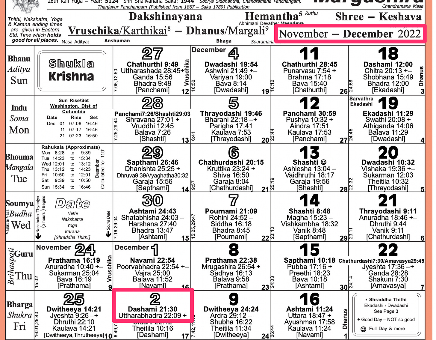 And in the Krishna Matha Washington DC Panchanga, it looks as follows: