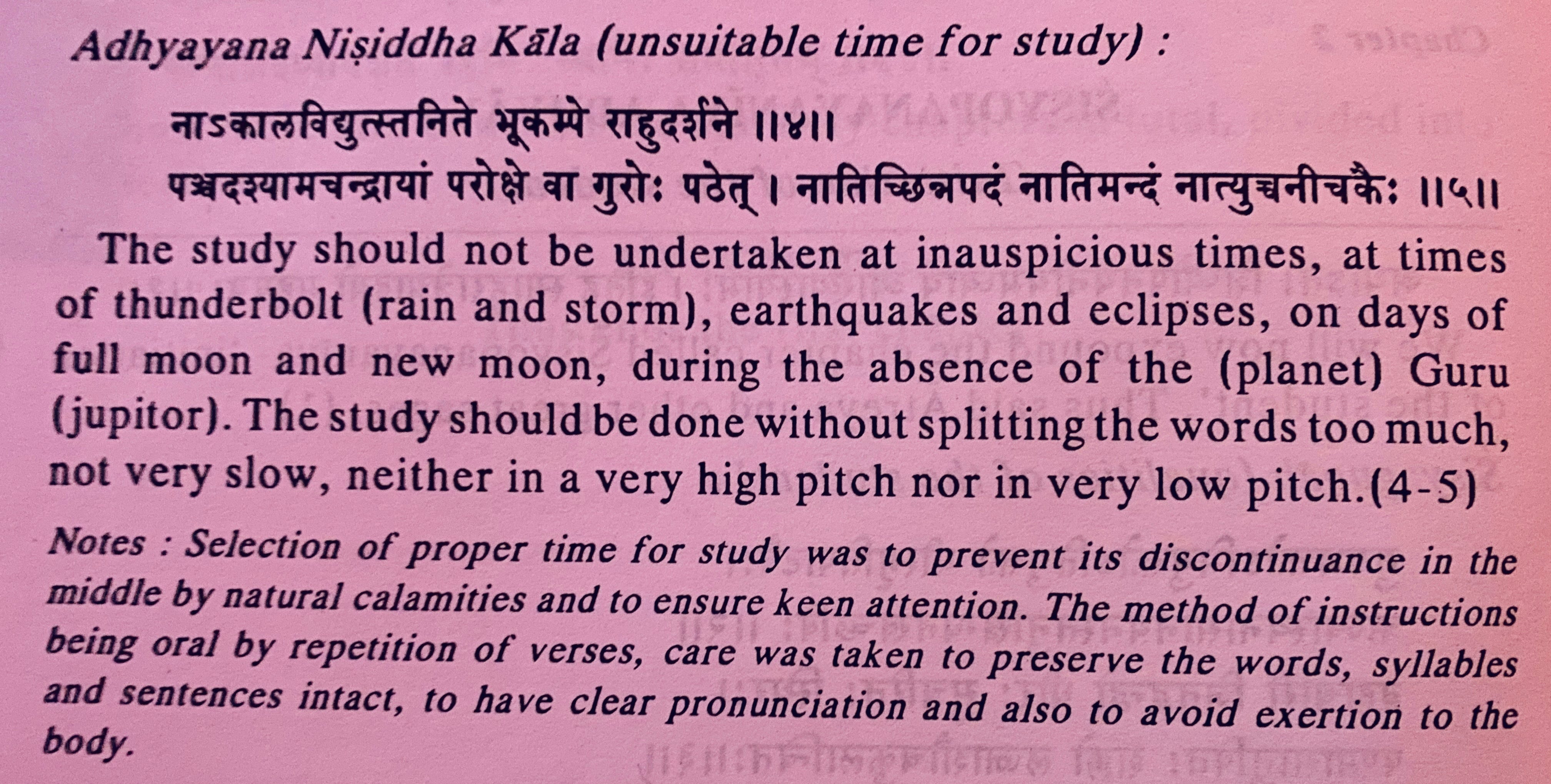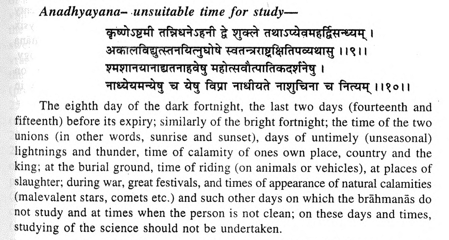 A more detailed list of non-study days is given in Suśruta Saṃhitā, Sūtrasthāna 2.9-10: