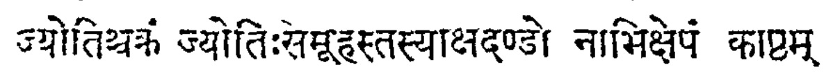 The commentary then says नाभिक्षेपं काष्ठम्. नाभिक्षेपं means something that is kept close to the stomach region. काष्ठम् means stick.