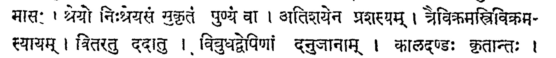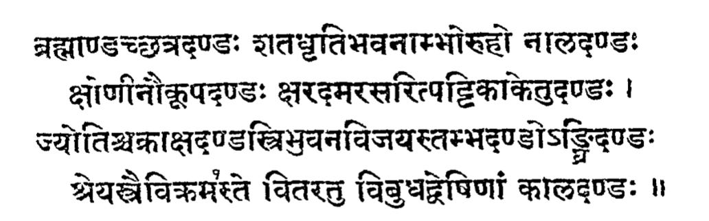 śreyastraivikramaste vitaratu vibudhadveṣiṇāṃ kāladaṇḍaḥ ।।