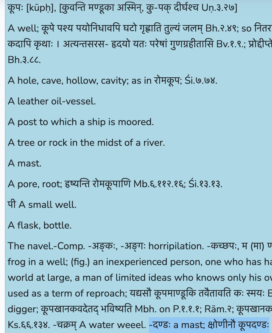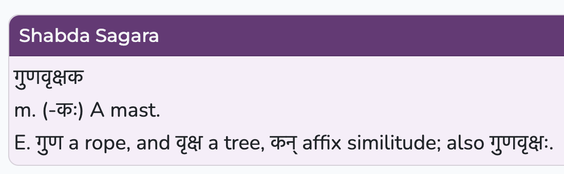 So now, it’s possible to see that कूपदण्डः means “a mast”. And in case, we cannot find it, the word गुणवृक्षक as per the commentary leaves no more doubt in this definition: