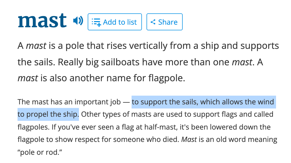 Next, you think of the connection between Earth and Boat. Boat and Mast are clearly connected. Since I’m not familiar with masts, I googled it and found the following information: