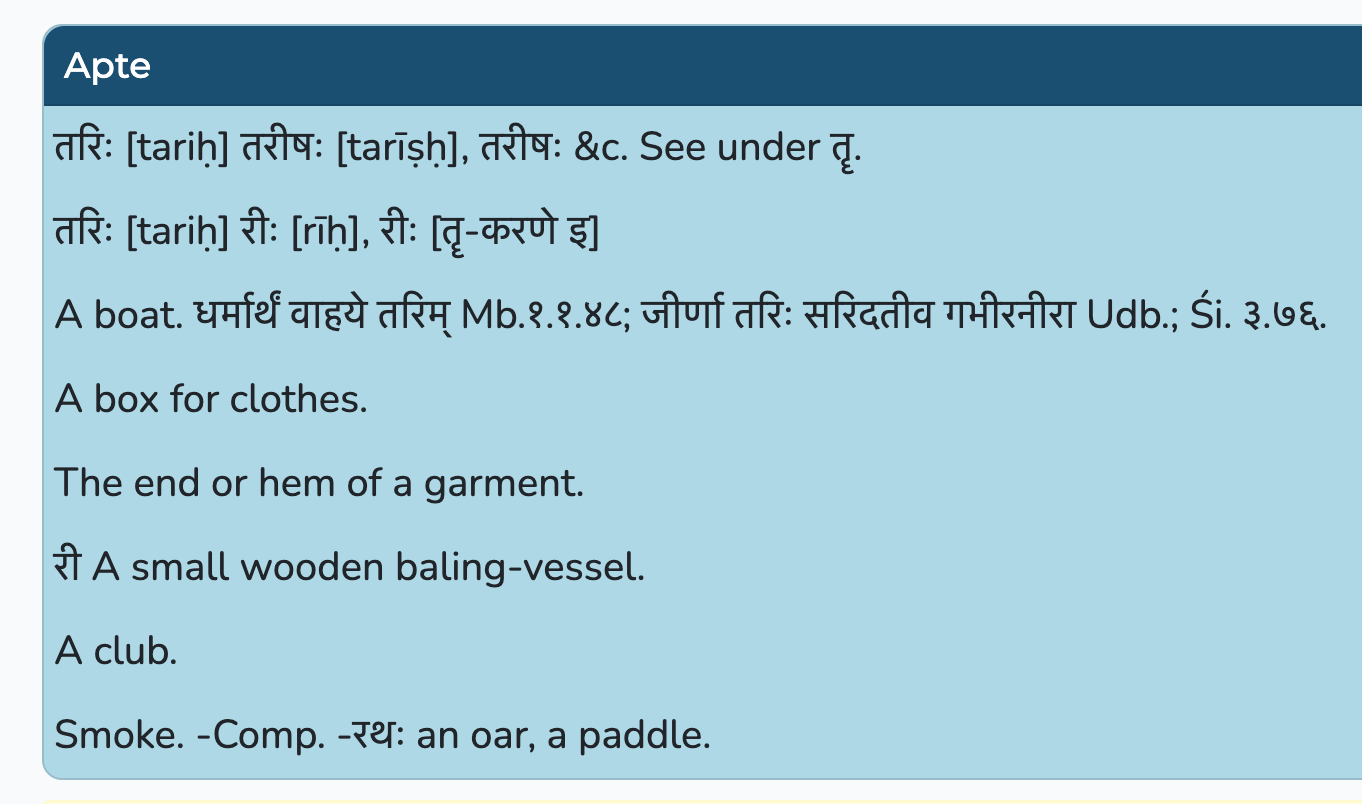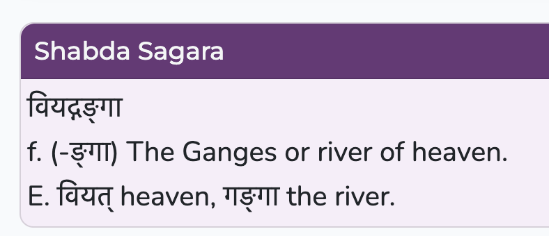 Next, we have the word अमर. But looking at the dictionary, it is clear that it should be combined with सरित्, अमर-सरित्.