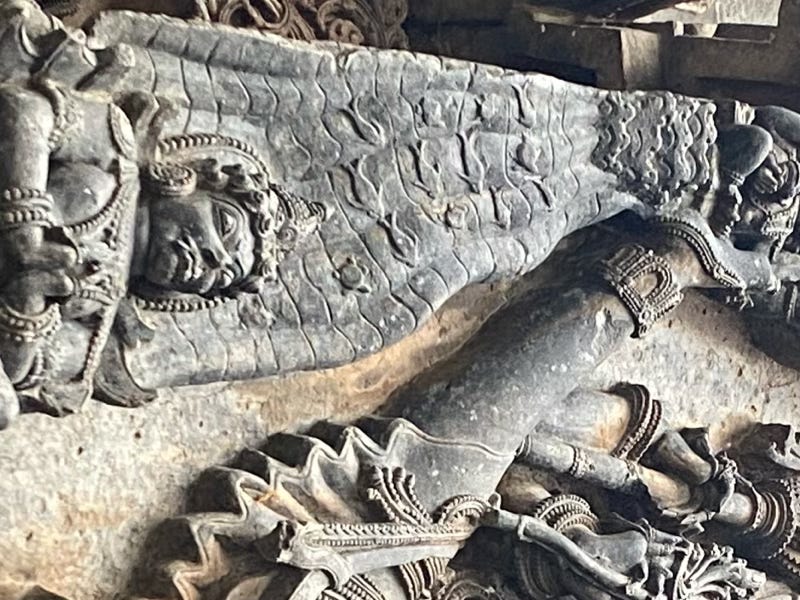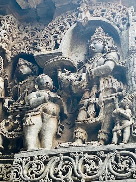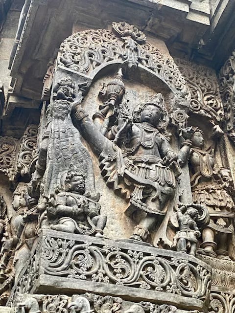 Additionally, I was lucky enough to go on a deep cultural road trip from Udupi to Hampi with Dr. Satyajith, stopping at the mind-blowing Channakeshwara and the Hoysaleswara / Halebidu Temples, where I could experience this shloka come to life in unbelievable 3-D carvings. In this blog post, I will share what I learned so others can understand the rich complexity and imagination that is encaptured by ancient Sanskrit authors.