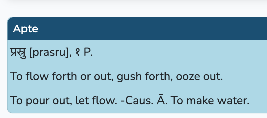 So from both क्षरत् and प्रस्रु meaning, we can connect this to the action of water oozing or running.